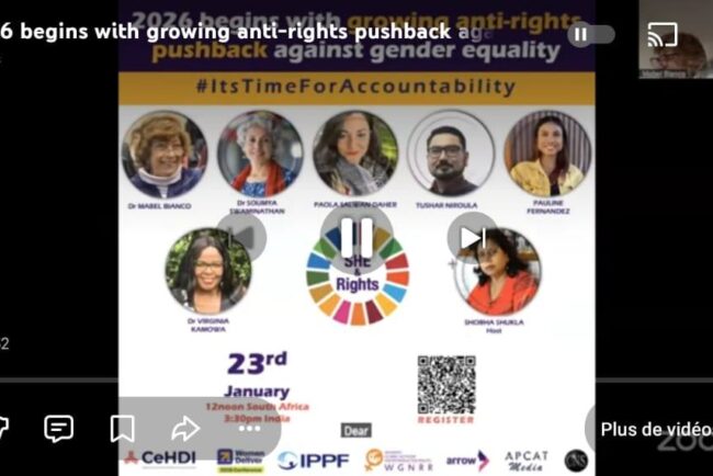 Une offensive mondiale contre les droits humains pour laquelle « Nous devons reconnaître le lien pernicieux entre l’injustice de genre, le patriarcat, le capitalisme, la militarisation et le fondamentalisme religieux », a déclaré Shobha Shukla, coordinatrice du programme SHE & Rights. Elle a salué la résilience des féministes et des défenseur·e·s de première ligne qui, malgré les reculs, continuent de protéger les acquis en matière de santé, de droits et de sécurité des femmes, des filles et des personnes de diverses identités de genre.