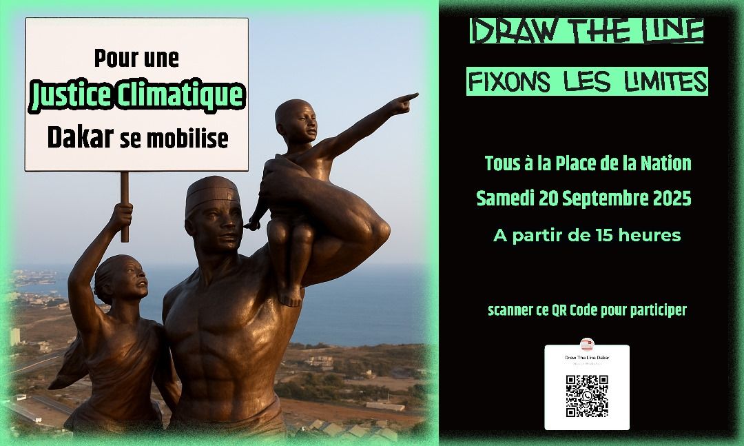 Le 20 septembre 2025, la Place de la Nation à Dakar sera le théâtre d’un flash mob géant organisé par le Réseau Sénégalais des Acteurs du Climat (RESAC), en partenariat avec de nombreuses organisations de la société civile.Cette initiative s’inscrit dans la dynamique mondiale « Draw the Line – Fixons les limites », un mouvement qui appelle à mettre fin à l’inaction climatique et à exiger des politiques ambitieuses face à l’urgence environnementale.À travers cette mobilisation artistique et citoyenne, les organisateurs veulent faire entendre la voix des populations, en particulier des jeunes, pour réclamer des mesures inclusives, justes et adaptées aux réalités locales.« L’heure n’est plus aux promesses, mais à l’action », rappellent les initiateurs, invitant toutes et tous à se joindre à cette manifestation symbolique pour défendre l’avenir de la planète.