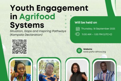 La Plateforme panafricaine d’échange entre organisations paysannes organise, le 18 septembre 2025, une session en ligne autour du thème : « Engagement des jeunes dans les systèmes agroalimentaires : situation, stratégies pour combler les lacunes et pistes inspirantes en référence à la Déclaration de Kampala ».